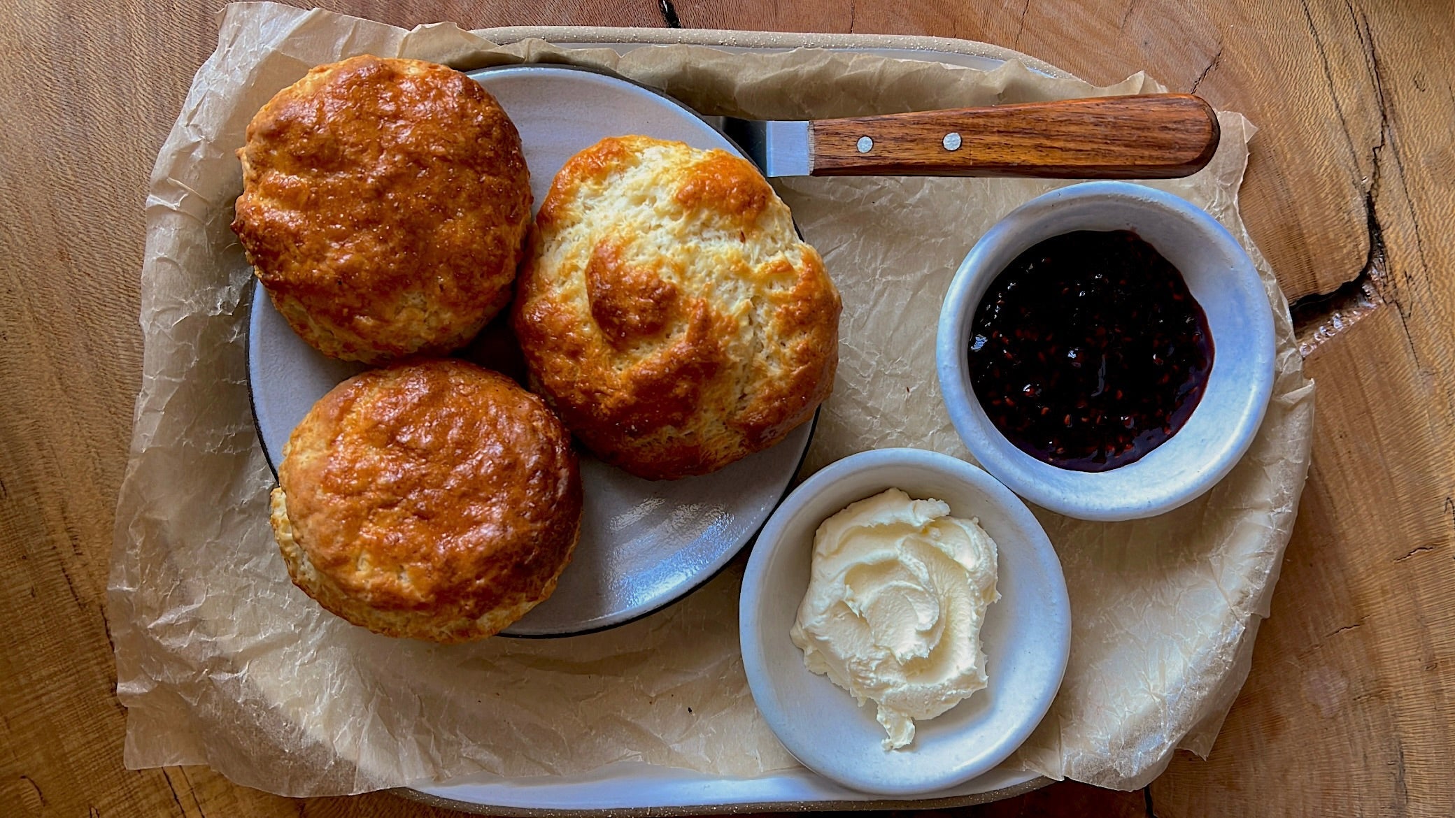 A proper scone requires very few common ingredients. Flour, a hit of baking powder, some frozen butter, and some cream to bring it together. The technique, the quality and care of your ingredients are really what's important when making a batch. Once you get it down, you’ll be cranking them out with ease for your sunday afternoon tea.