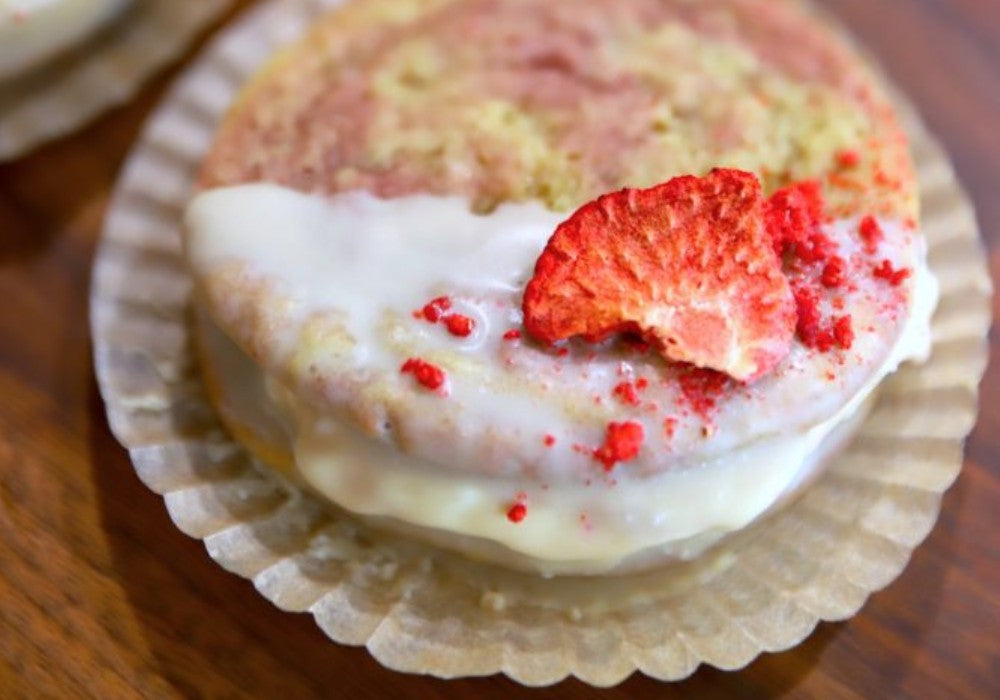 - Dip the sandwich in the tahini once more but before you place it in the freezer for 2 hours, sprinkle on some strawberry powder.