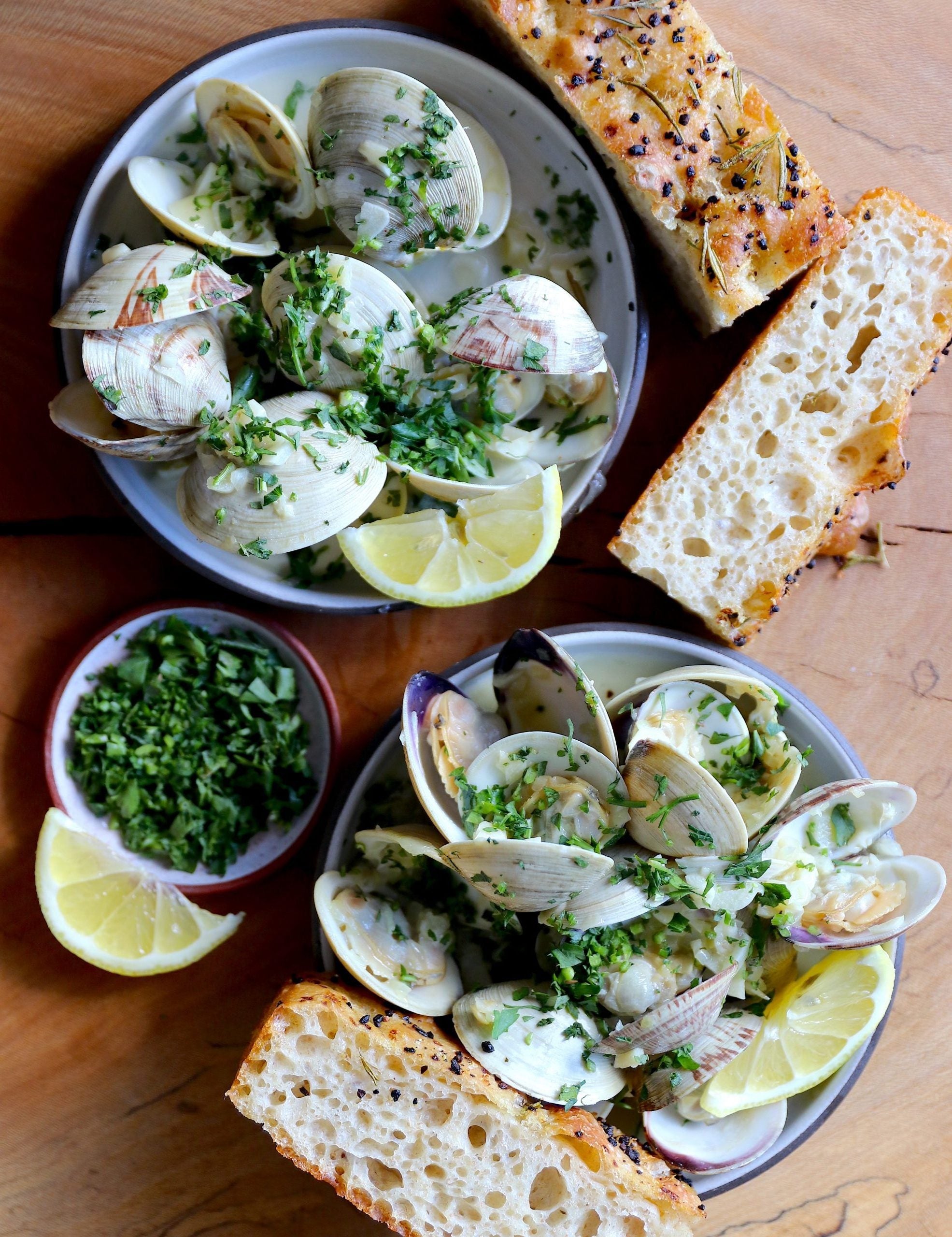 Extra Buttery Extra Garlicky Clams w. Lemon Zested Rosemary Focaccia
