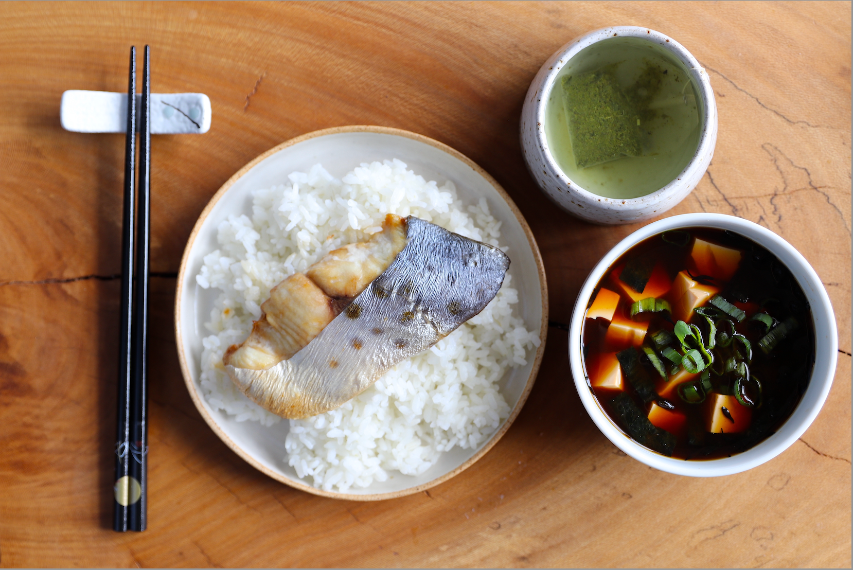 Typically, a Japanese breakfast is served with a bowl of rice, miso/clear soup, a piece of baked protein (mainly fish), and various side dishes of pickled/fresh veggies, eggs, tofu, and or nori. I know it might seem a little intimidating at first to make a full blown Japanese breakfast on your easy Sunday morning but its very customizable to what you already have in the fridge. The various side dishes for me will change depending on what I have in my fridge. It can stem from a variety of pre-pickled veggies like umboshi (pickled plum), pickled ginger, daikon, or pickled scallions to simpler sides like a soft boiled egg, steamed edamame, freshly cut cucumbers or carrots, or even a little bit of last nights leftovers. However, one thing is for sure, the miso soup, rice, and baked fish are always present.