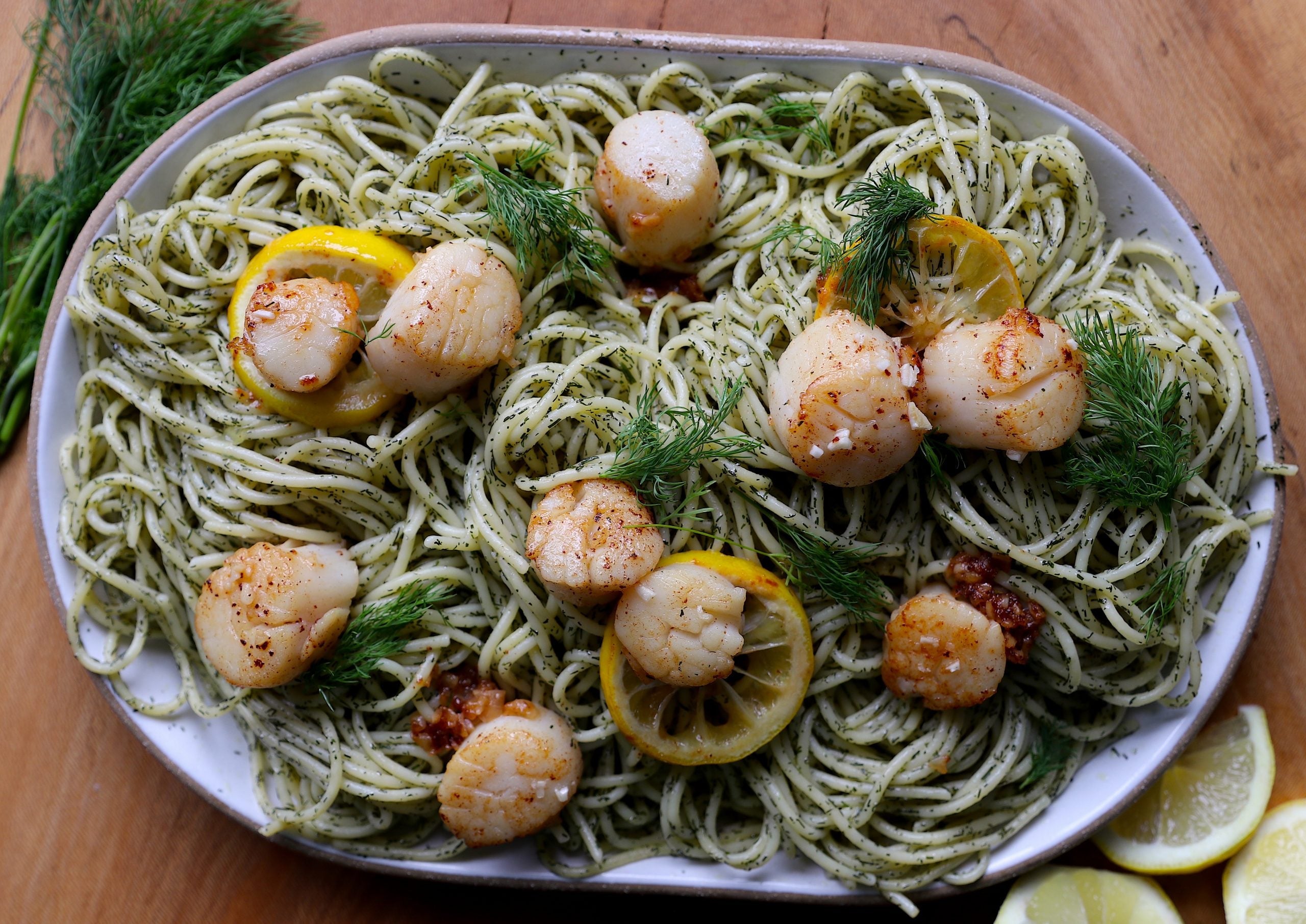 Lemony Dill Pasta w. Seared Garlic Scallops