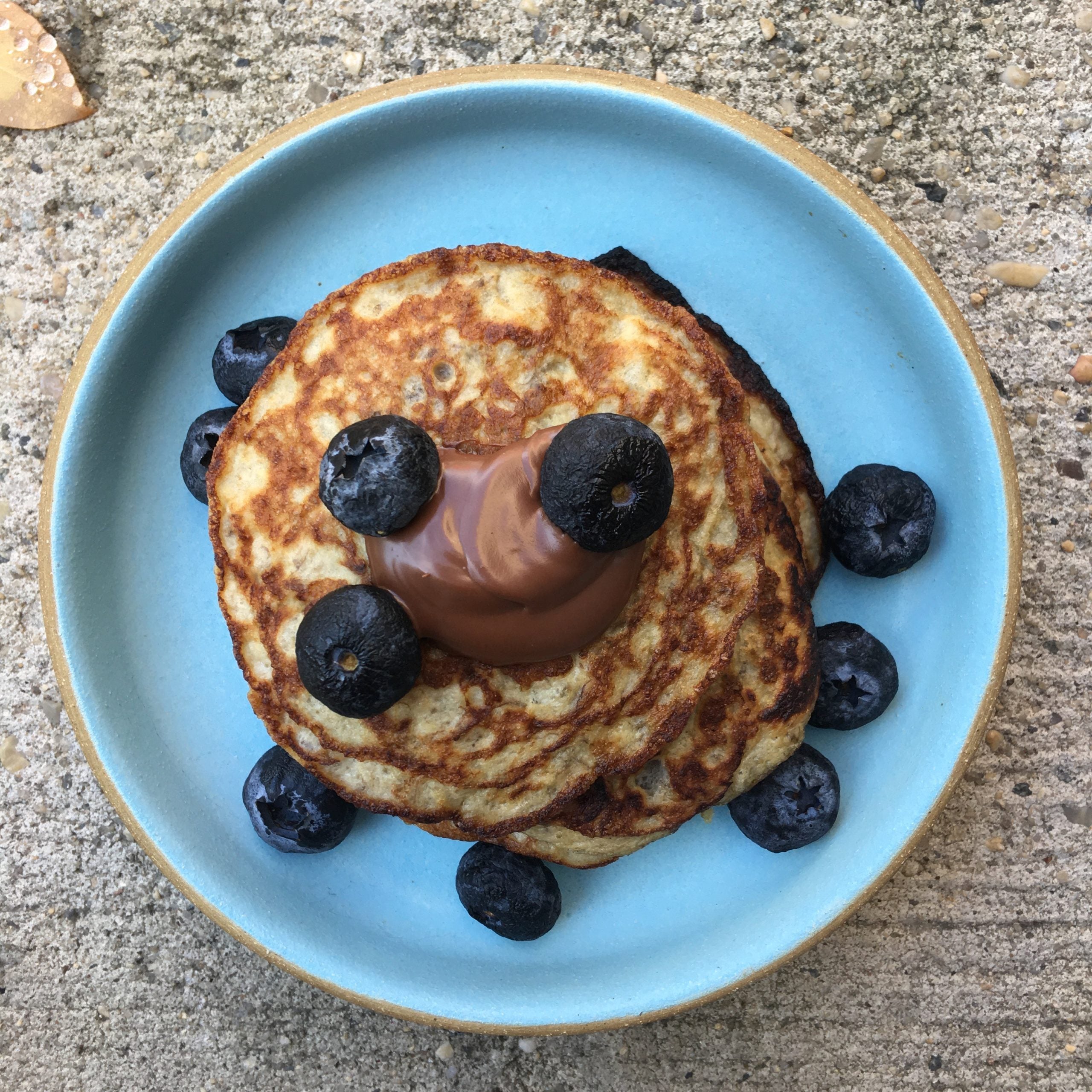 This recipes goes out to my mom since she would make these for me for breakfast on the weekend. Not only is it a great recipes for mom with a tight schedule, its such a quick and easy recipe that you’ll have breakfast on the table in no time. They such a good source of protein and super customizable. I topped my delicious pancake with some blueberries and nutella. So yummy!